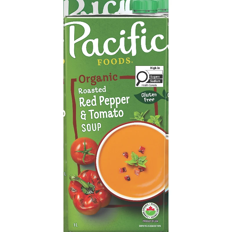 This Pacific Foods are made the old fashioned way; there's a right way to do things and it's seldom the easiest. No shortcuts here.. Know where your food comes from with Certified Organic ingredients that are locally sourced whenever possible.. No GMOs, no additives, and no preservatives. Just good old-fashioned flavour. Harvested at peak flavour, red peppers are slow roasted to bring out a natural sweet flavour, then added to vine-ripened tomatoes, organic milk, and a special blend of spices for a wholesome soup that tastes like Summertime | Pacific Soup Pacific Organic Soup - Creamy Roasted Red Pepper & Tomato Size 1l