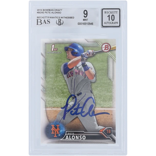 Pete Alonso New York Mets Autographed 2016 Bowman Draft 1st Bowman #BD-92 Beckett Fanatics Witnessed Authenticated 9/10 Rookie Card