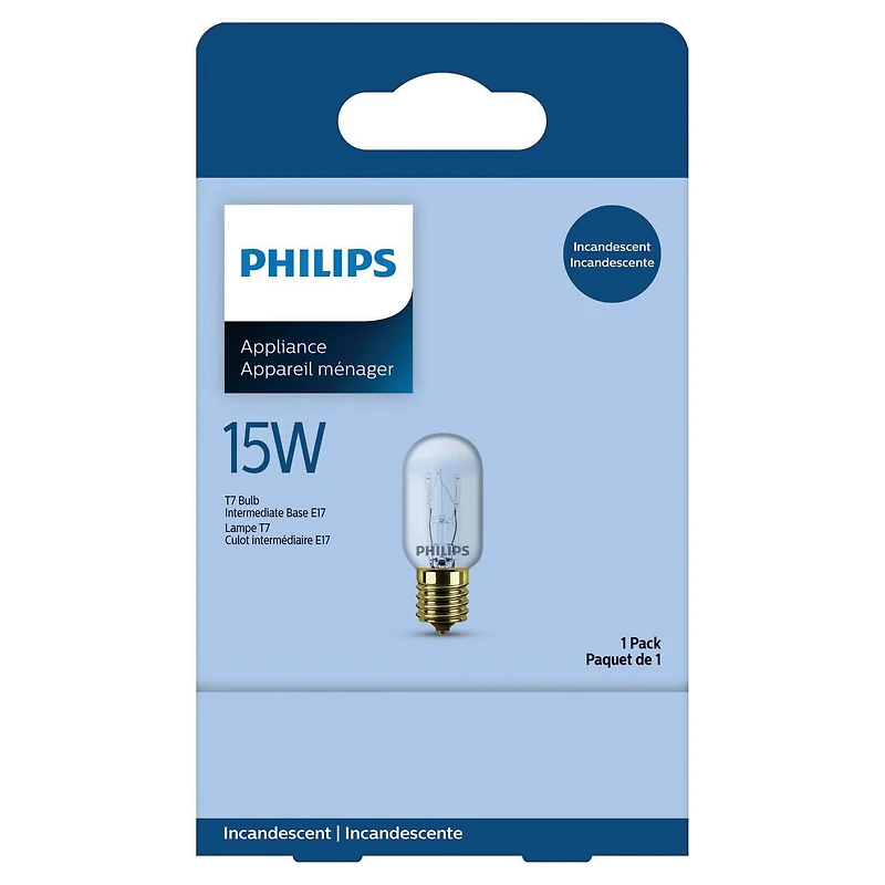The Philips Appliance bulb provides the perfect option to light your refrigerator, oven and other household appliances. Ideal for use in various appliances including microwaves, ranges and sewing machines. Average rated life: 2,000 hours. Philips Specialty Incandescent bulbs provide the perfect light for accent and display lighting as well as general lighting in a variety of applications. Incandescent light bulbs offer a balanced full spectrum of visible light, high color rendering, and low blue light, making them ideal for some applications. They also produce a warm, inviting glow.