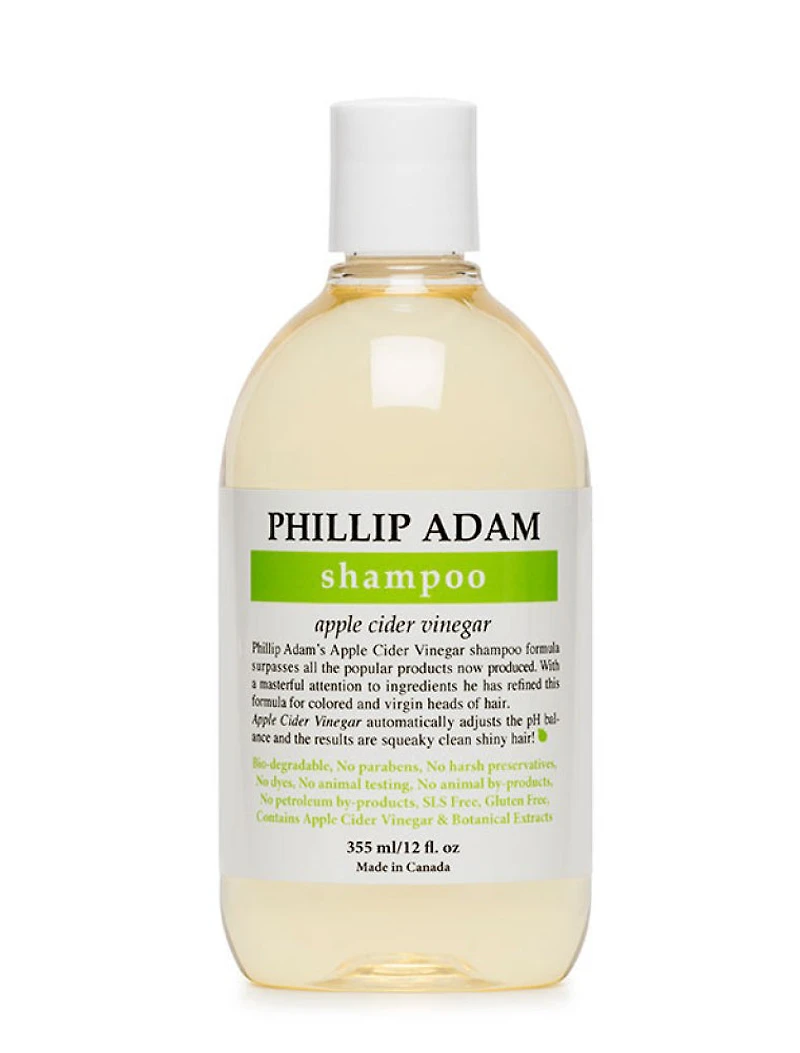 DescriptionPHILLIP ADAM - ACV Shampoo - 1 1 Litre Litre - NPN: -- Apple Cider Vinegar Cleansing Shampoo ACV Shampoo leaves the hair with the perfect ph balance, rinses out of the hair quickly, adds sheen and is colour safe. Comes in 60ml, 355ml & Litres Bio degradable, gluten free and not tested on animals.INGREDIENTSPurified Water (Aqua), Decyl Glucoside, Ammonium Cocoyl Isethionate, Cocamidopropyl Betaine, Apple Cider Vinegar, Caprylhydroxamic Acid & Caprylyl Glycol & Glycerin, Lactic Acid, Pyrus malus & Communis extract (Apple & Pear) & Citrus aurantifolia (Lime) Essential Oil, Hydrolized Pea Protein,Chamomilla Recutita (Matricaria) Flower Extract, Melissa Officinalis Leaf Extract (lemon balm),Urtica Dioica (Nettle) Extract, Rosmarinus Officinalis (Rosemary) Leaf Extract, Salvia Officinalis (Sage)