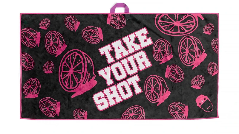 Keep your gear looking fresh with the new Pink Whitney "Take Your Shot" Towel. Made from a premium cotton-poly blend, it effortlessly absorbs water, sand, and dirt like no other golf towel. Featuring vibrant, custom designs, it adds the perfect touch of personality to your golf bag