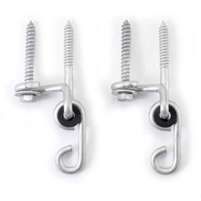 PlayStar's standard swing hanger is over 30% larger with a wider diameter steel than competitive standard swing hangers. Patented Dual fastening system utilizes a second lag screw. This Doubles the holding power and ensures swing hanger will not turn out of orientation. Nylon bushing, swings smooth, quiet and straight. Weight limit is 210 lbs per pair. Swing Hangers have exclusive, patented double fastening system