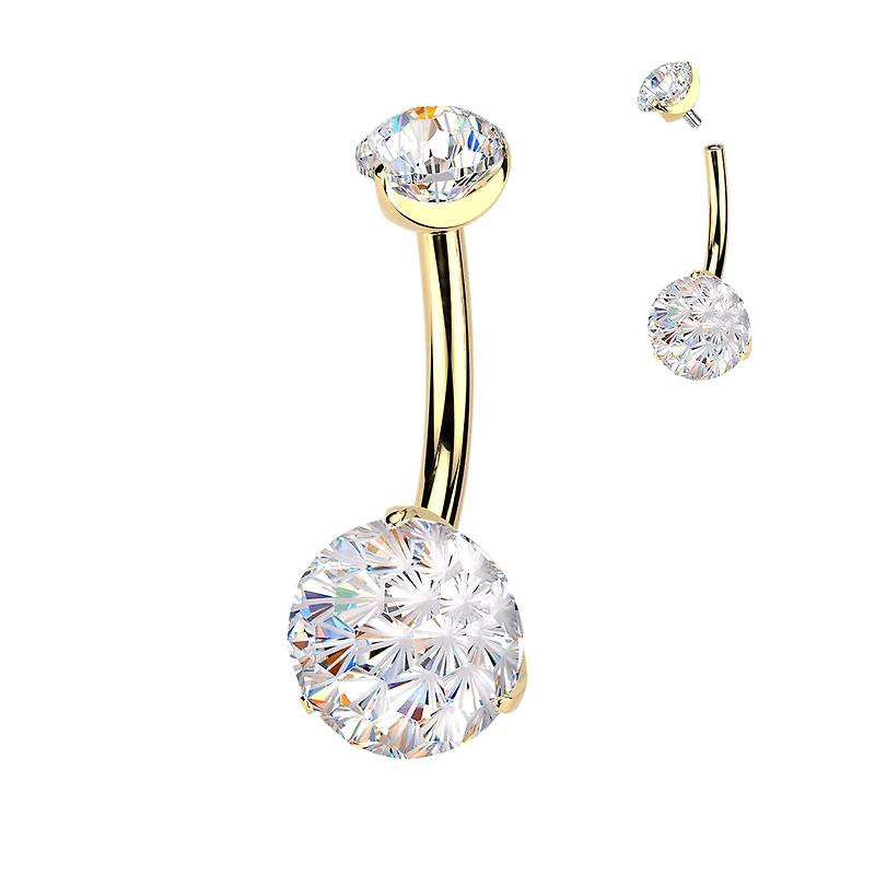 Premium G23 Titanium Fire-Cut Claw‑Set Crystal Navel Barbell 14g