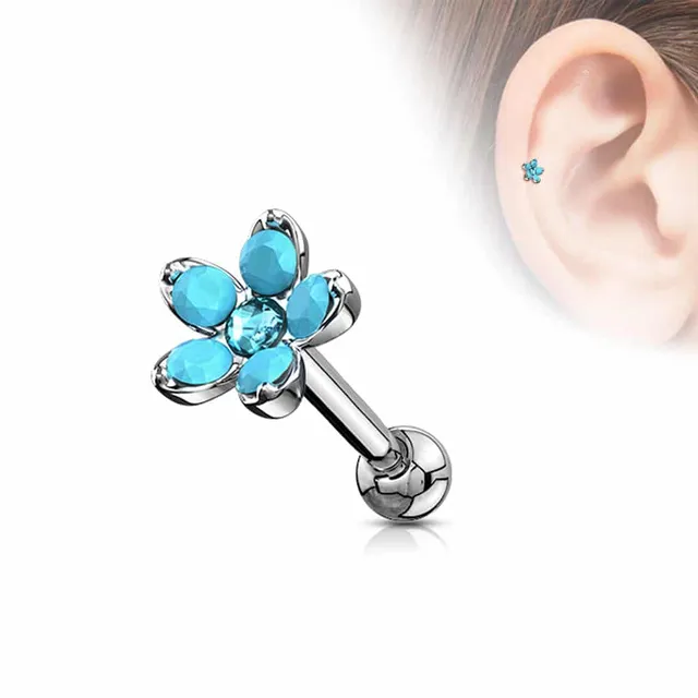 Premium Turquoise Flower Curved Barbell 16g