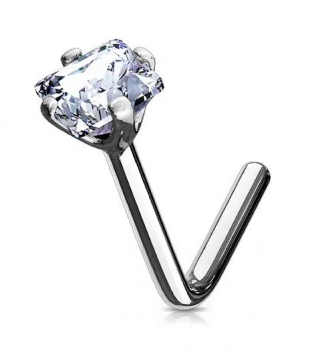 Premium Claw-Set Square Crystal Nose Bone 18g