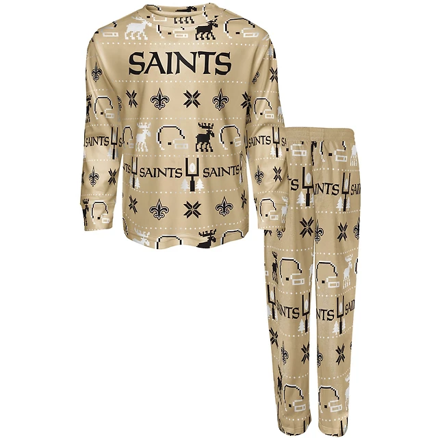 Preschool Gold New Orleans Saints Allover Print Long Sleeve T-Shirt & Pants - Sleep Set