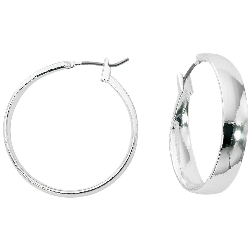 Primavera Wide Polished Click Hoop Earrings - Silvertone in Coquitlam, BC