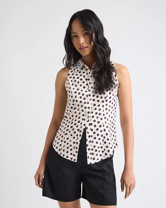 Princess-Cut Sleeveless Buttoned-Down Blouse