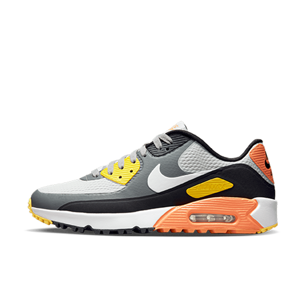 AN ICON REIMAGINED FOR THE COURSE. The original Nike Air Max 90 was renowned for its clean lines and timeless style. The Nike Air Max 90 G stays true to the OG icon with a few updates made for golf, like integrated traction and a thin overlay that helps keep out water.