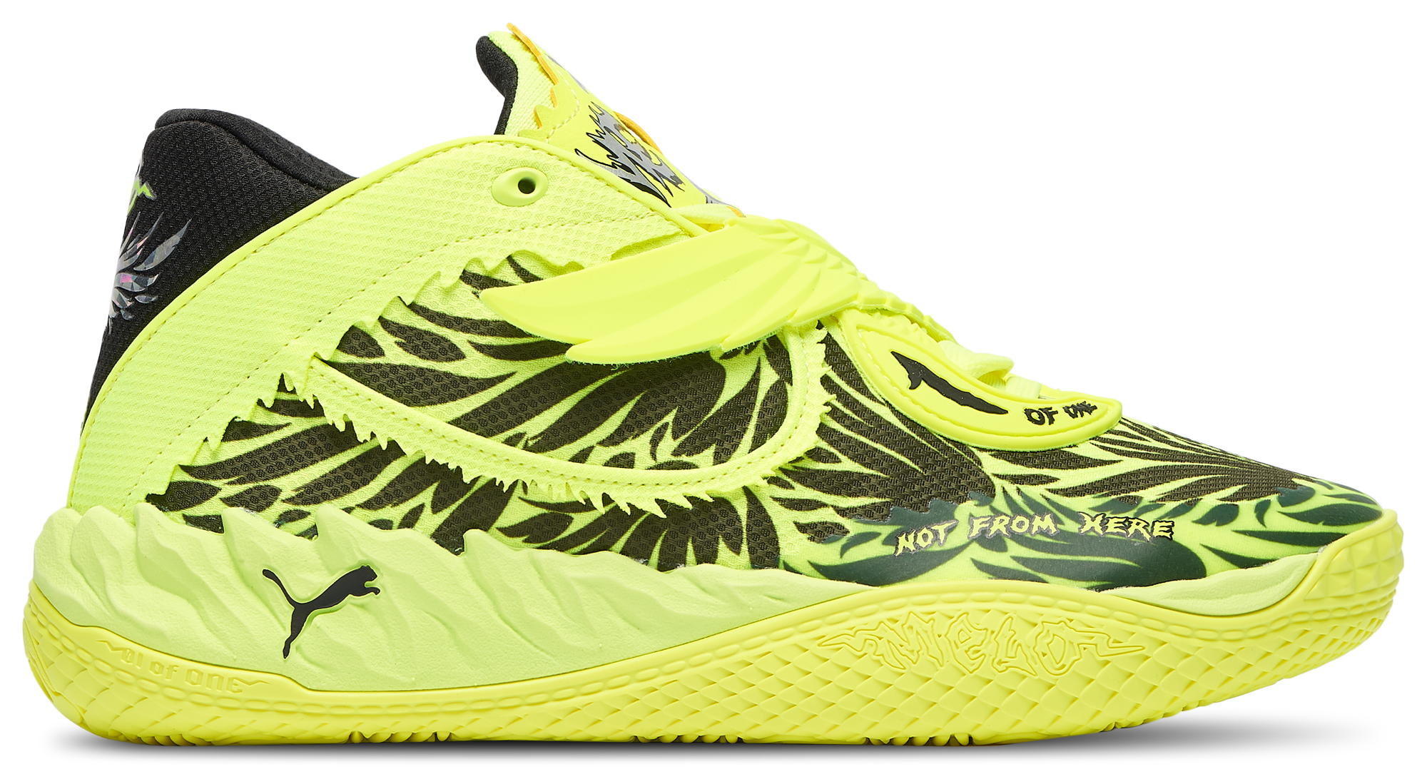 Get ready to strap in and take off. The PUMA MB.05 Voltage powers up your game with high-voltage energy in every cut, sprint, and slam. Featuring a new molded forefoot strap for enhanced lockdown and control, these fifth signature sneakers showcase bold material executions and signature LaMelo’s storytelling details that bring personality to every play. The iconic MB1 Wings logo popping against the electrifying Volt base adds a visual edge that’s unmistakably Melo. From the hardwood to the streets, the PUMA MB.05 Voltage lights up your look with fearless energy and standout style.