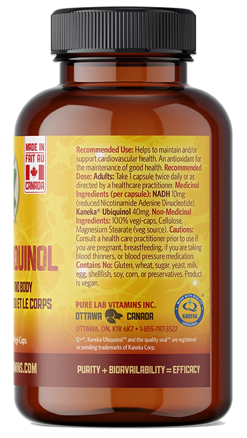 Pure Lab Vitamins - NADH + Ubiquinol - 60 Veg Capsules - NPN: 80069222