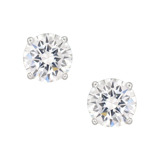 Quintessential Sterling Silver Earring White Cz 4Mm Round