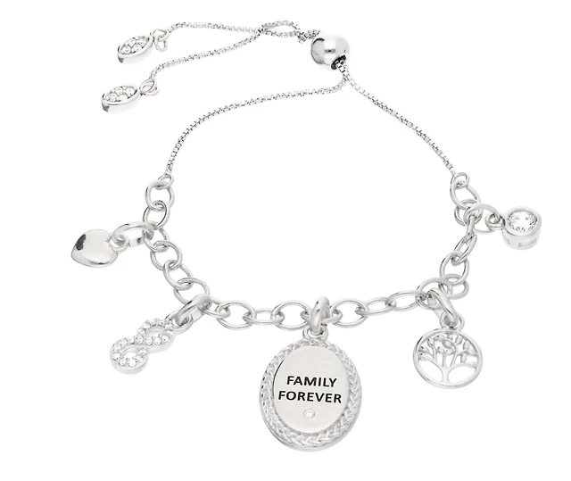 Quintessential Sterling Silver " Family Forever " Charm Bolo Bracelet