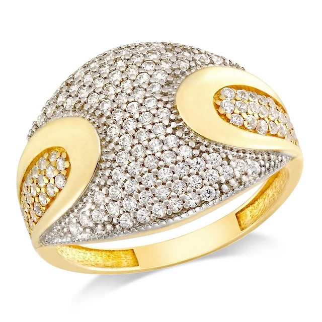 Quintessential Sterling Silver White /Yellow Pave Gold Plated Ring