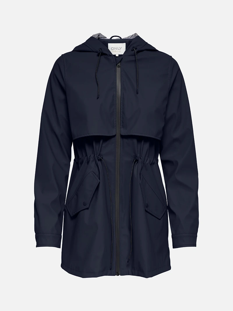Made to keep the elements at bay, the Only Race Short Raincoat is constructed to resist both the wind and water. Designed with a fixed hood, an interior drawcord at the waist offers an adjustable fit. Two flap pockets complete the look while providing accessible storage.  Zip-up rain jacket Water and wind resistant Interior adjustable drawcord at waist Adjustable fixed hood Two front flap pockets 100% polyurethane coated recycled polyester Style no.: 15161241