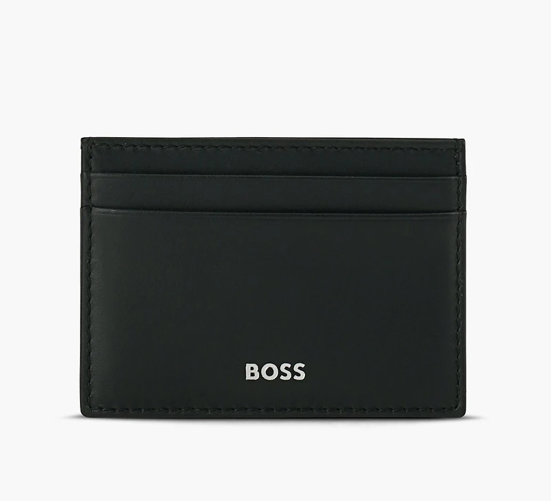 Crafted in a sleek, compact silhouette, the BOSS Randy card holder offers refined everyday organization. Designed with four card slots and a central slip pocket, it keeps essentials streamlined while maintaining a polished look. Finished with subtle BOSS branding, this minimalist piece delivers modern functionality in a slim, pocket‑friendly profile.