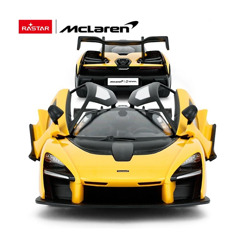 Striking yellow McLaren Senna replica in a 1:14 scale model Enjoy precise control and high-speed racing with the remote control functionality Battery-powered operation: Requires 5 AA batteries and 2 AA batteries (not included) for extended playtime and exhilarating races.