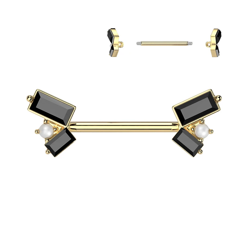 Rectangular Crystal + Pearl Nipple Barbell 14g