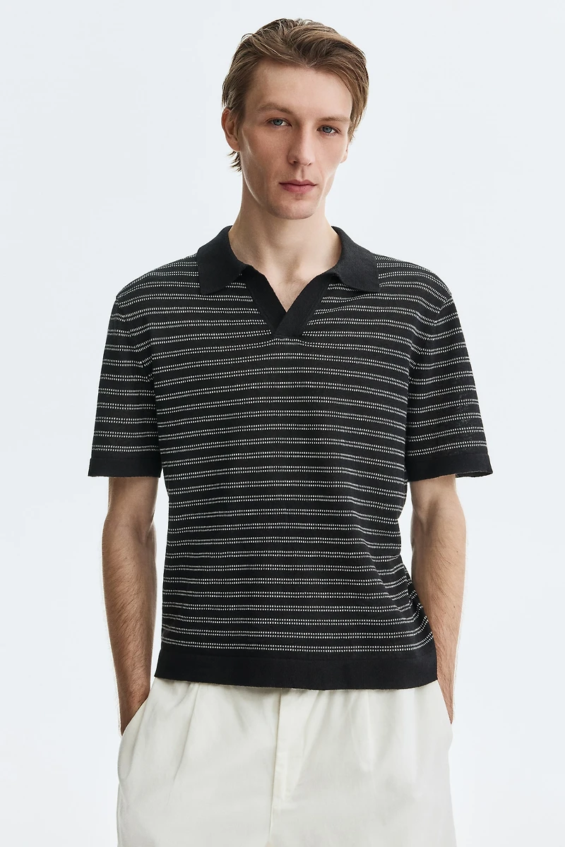 Regular-fit, knit polo shirt in a soft linen blend with a comfortable, classic silhouette. Collar, V-shaped opening at front, and ribbing at collar, cuffs, and hem.