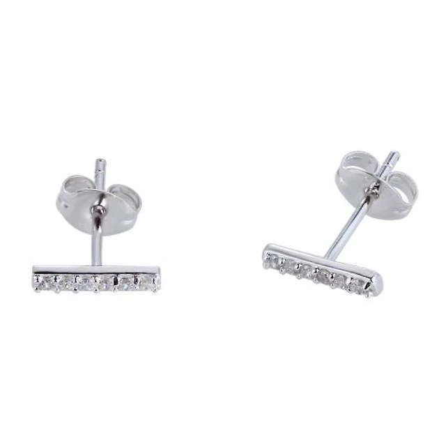 White Lab-Created Sapphire Three Stone Border Slant Bar Stud Earrings in Sterling Silver