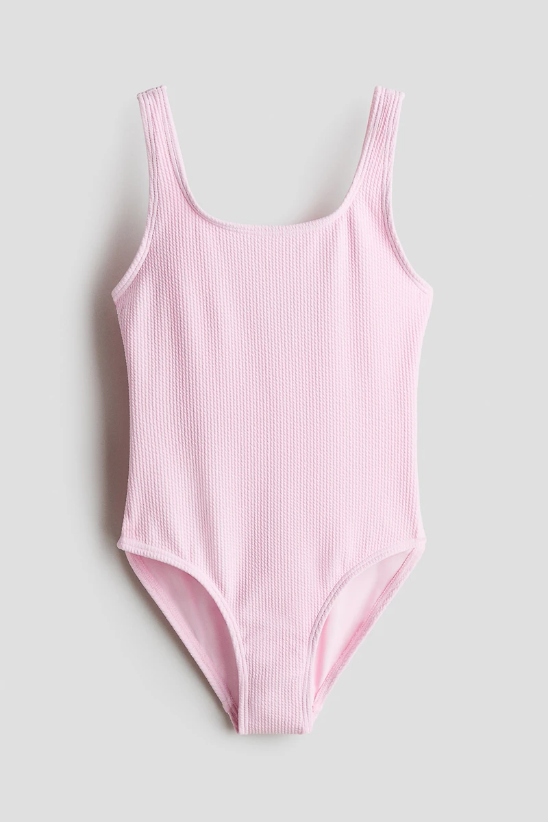 Ribbed swimsuit with a round neckline and a low-cut back. Fully lined.