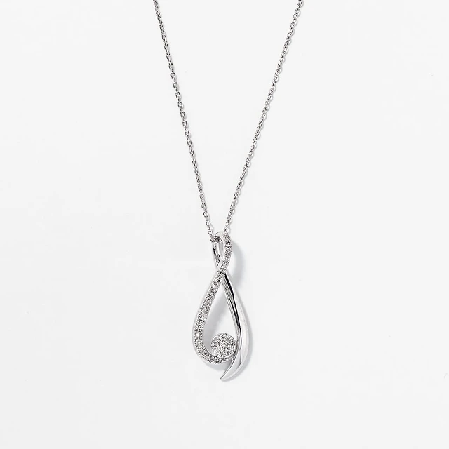 Ribbon Pendant Necklace with Diamonds in 10K White Gold (0.15ct tw)