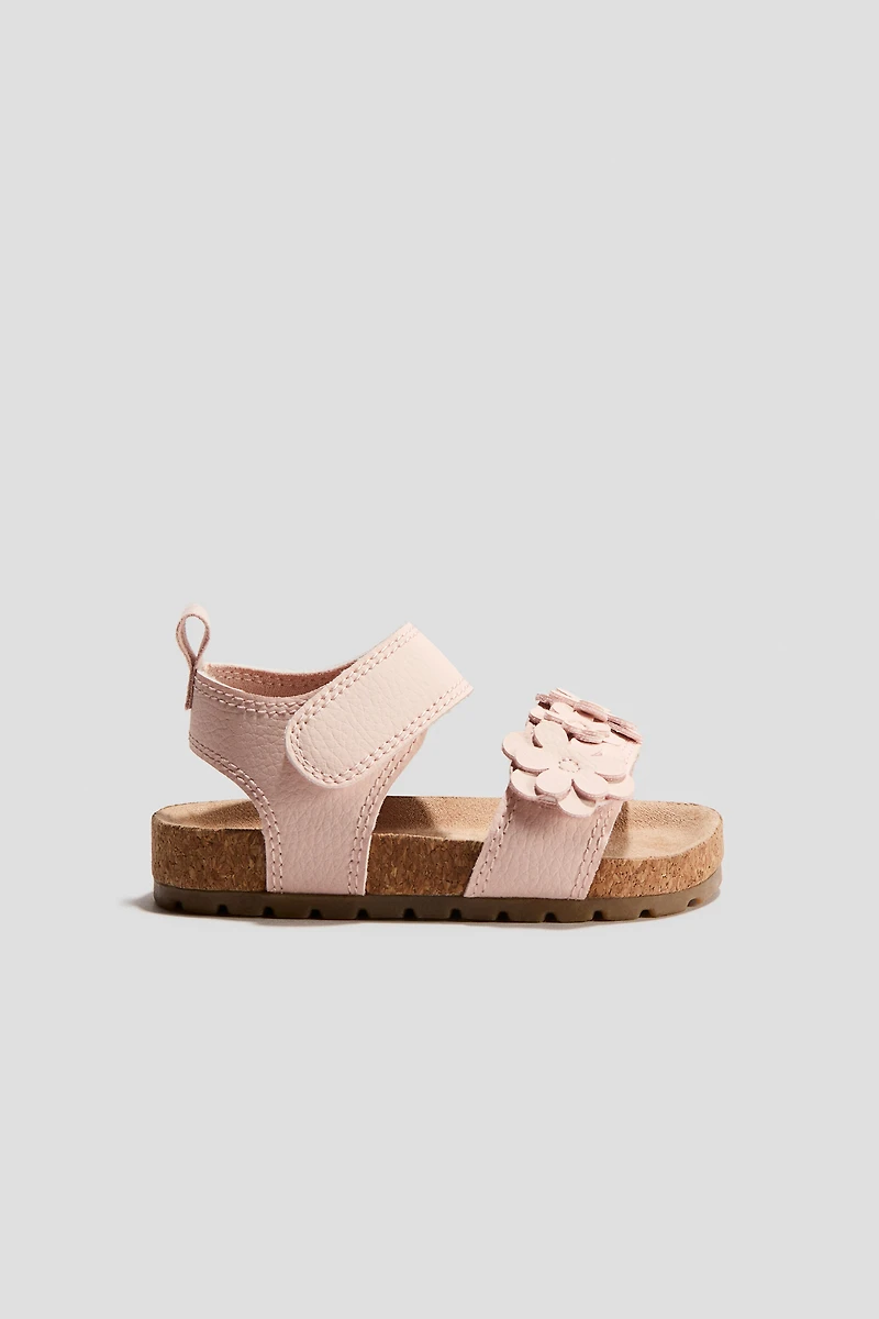 Sandals in napped fabric. Adjustable foot and ankle straps with hook-loop fastening. Molded insoles and patterned soles. Sole thickness 3/4 in.
