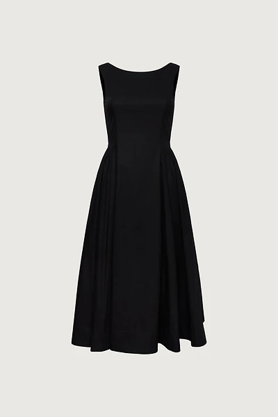 COTTON POPLIN HIGH NECK MIDI DRESS