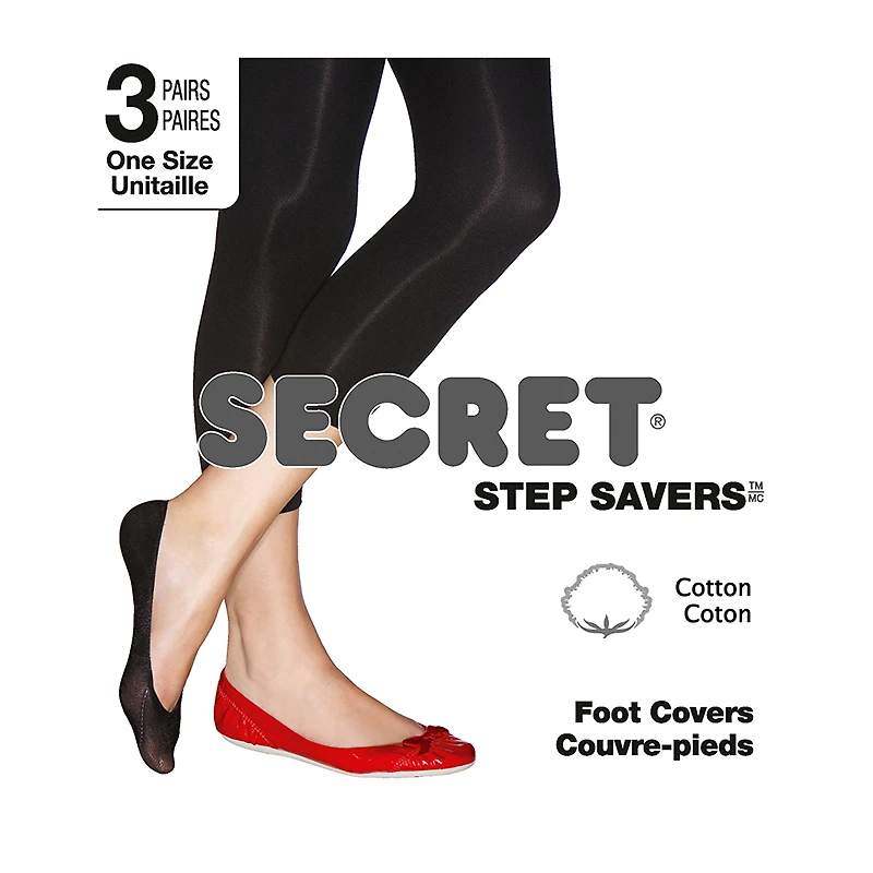 A Secret so pampering... Did you know that the average person spends almost 1/3 of their life in shoes?Secret foot covers are discreet and comfortable to wear, they protect your shoes from moisture, prevent shoe friction & painful blisters to give you the added confidence that you need to get you through your hectic day! Cotton. 50% Nylon, 42% Cotton, 8% Spandex | Secret Step Savers Secret Cotton Shoe Liner in Black