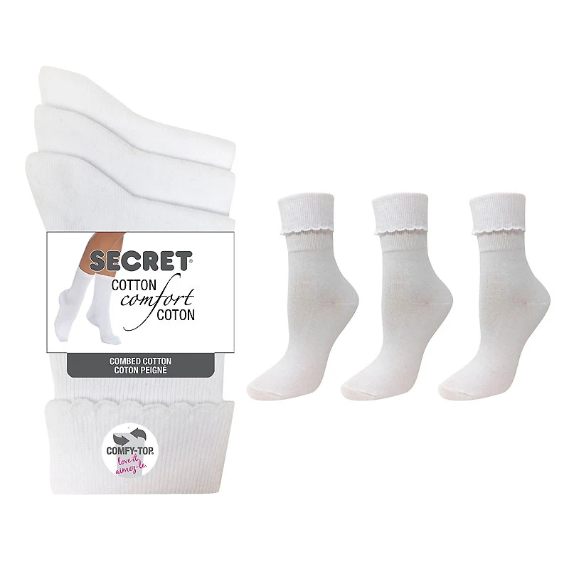 Secret Ladies Cotton/Lycra Cuff Socks - White - 3 pairs in Coquitlam, BC