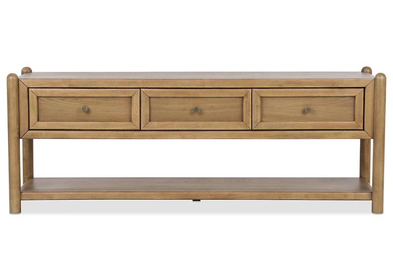 Designed with elm veneers that reveal a flowy grain, our Seraya TV Stand brings a soothing, mid-tone warmth to any room.