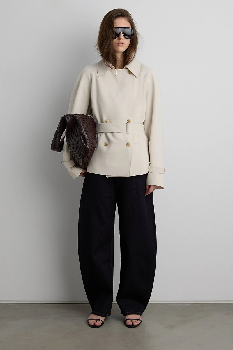 Inspired by our iconic, best-selling trench coat, this version is shorter and hits just right at the hips. It has the same luxe fabric and classic trench details. A new outerwear choice you can wear with all your looks this season. Pair yours with a mockneck knit and jeans.