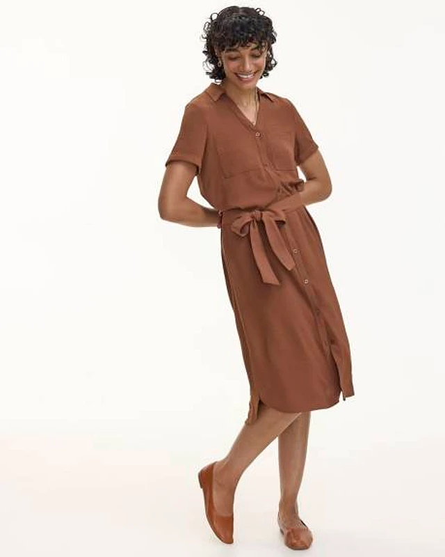 Short-Sleeve Buttoned-Down Dress with Shirt Collar