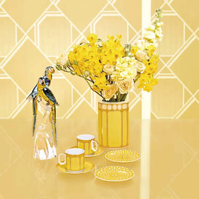 Idyllia espresso cup with saucer, Porcelain, Crystal print motif, citron, Multicoloured by SWAROVSKI