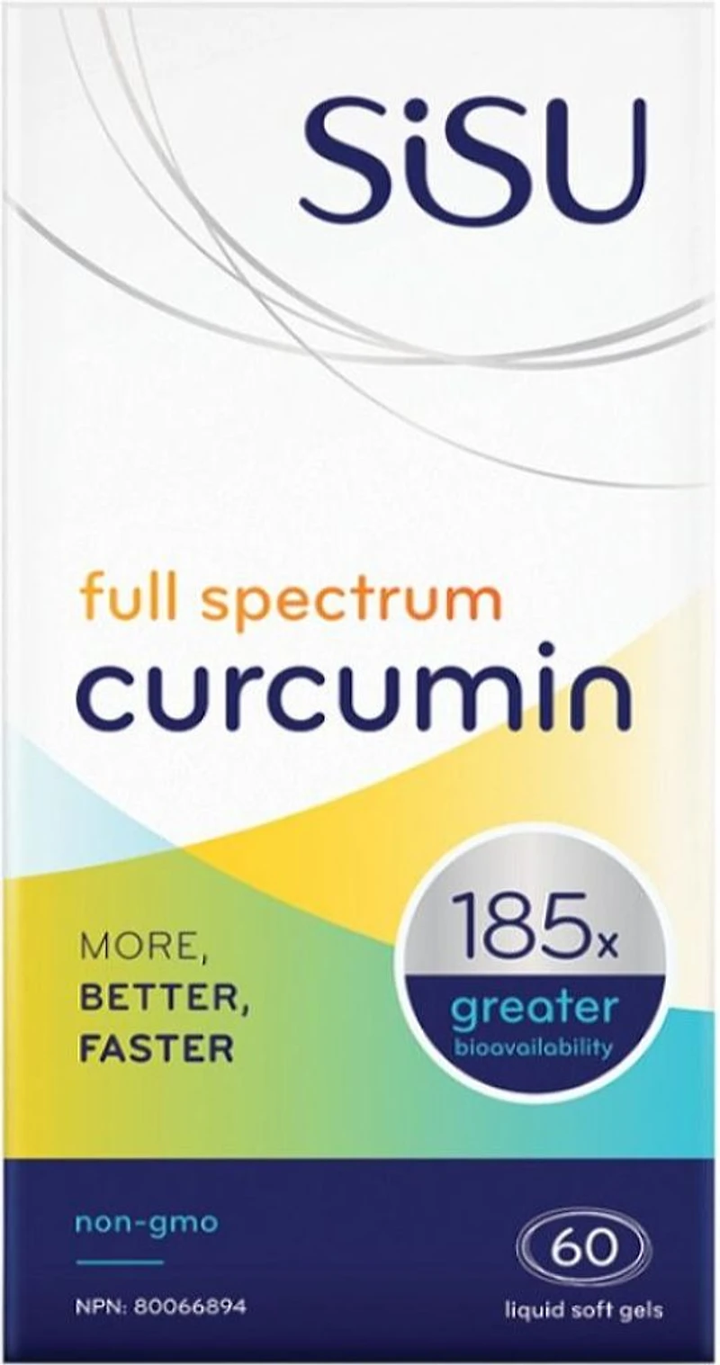 The most bioavailable curcumin in a water-soluble liquid extract185x better bioavailabilityade with the latest micelle technologyDescriptionSisu - Full Spectrum Curcumin - 60 Softgel(s) - NPN: 80066894 -- Pain-free joints, smooth skin, a strong heart and sharp mind essential elements for a long, healthy life. Traditional medicine and modern research have identified curcumin as a safe, natural remedy that could be the key to the prevention and treatment of many of the conditions that shorten, or reduce the quality of life. Curcumin has shown impressive preliminary results treating inflammation, particularly of the joints, skin, lungs and intestines, and significant impact on brain health. However, curcumin is fat soluble and suffers from extremely poor absorption and rapid excretion which has limited this amazing plants potential to positively affect human healthuntil now.SISU Full Spectrum Curcumin has 185x better bioavailability than standard 95% curcumin extract. To achieve this, SISU uses 95% curcumin extract as a starting point and then employs a patented process to reduce the particle size and encapsulate the curcumin within water-loving hydrophilic spheres called micelles. This transforms an opaque powder into a clear, body-ready liquid that allows curcumin to be readily passed into the blood stream and stay in the body for a full 24 hours. SISU unlocks the power of curcumin like never beforejust one liquid soft gel, once daily delivers maximized anti-inflammatory and antioxidant potential.INGREDIENTS