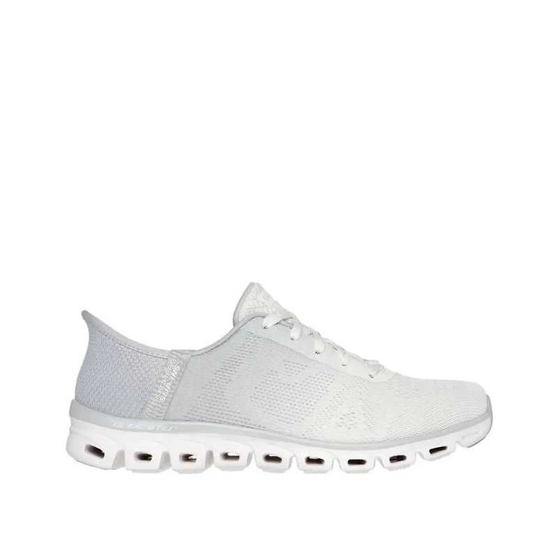 Super flexible comfort and effortless style meet in Skechers Hands Free Slip-ins®: Glide-Step® - Excite. Designed with our exclusive Heel Pillow™, this vegan lace-up features an engineered ombre mesh upper, Skechers Air-Cooled Memory Foam® comfort insole, and a Glide-Step® cushioned geometric midsole.