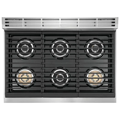Experience professional cooking performance at home with the Smeg Professional 36" gas cooktop. This ultra-low profile cooktop features six powerful burners with a heavy duty cast iron finish. It has an electronic ignition for easy operation and runs on natural gas, with an LP gas conversion kit included. | Smeg Professional 36" 6-Burner Gas Cooktop (RTU366GX) - Stainless Steel
