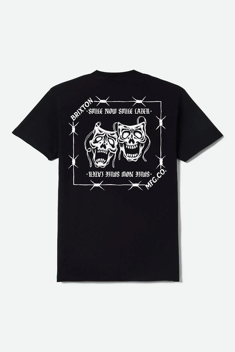 Cut from 100% soft cotton with a weathered wash,Brixton Smile Always tee got that favorite vintage find feel from the first wear. Featuring "smile now, smile later" graphics on the front and back, this standard-fit staple is built for everyday life.  Men's short sleeve tee Crewneck Standard fit Inset sleeves Front and back screenprint Worn wash 100% cotton
