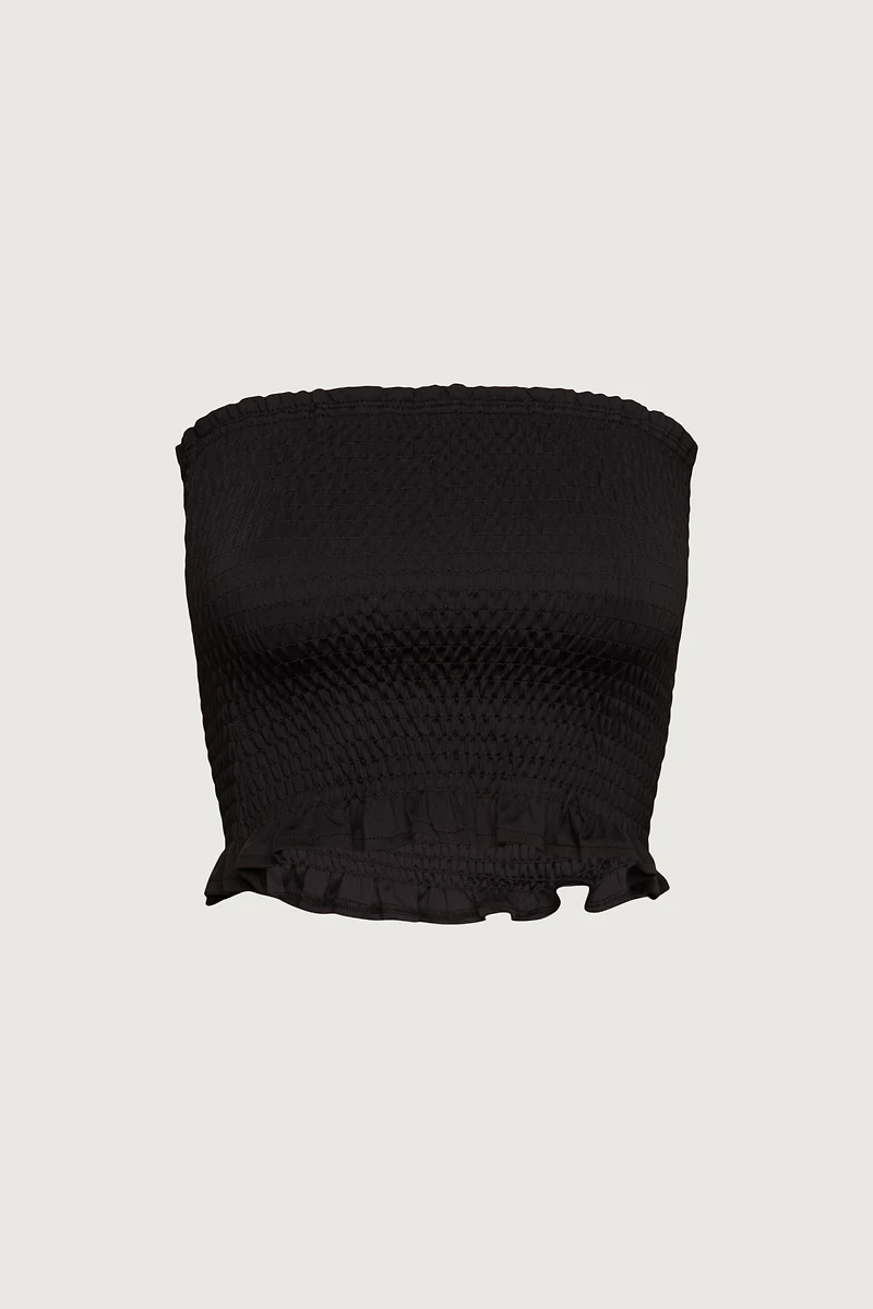 This smocked tube top is perfect for summer days ahead. It's made from a mid-weight stretch knit fabric in a slim fit. It's finished with a ruffled hem. An easy and versatile top you can wear with endless outfits, pair it with white jeans or with a satin skirt.