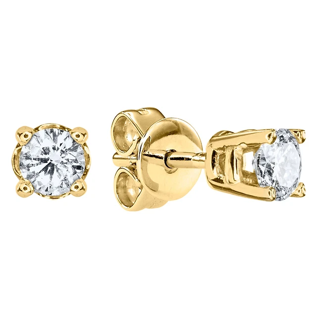 Solitaire Canadian Diamond Stud Earrings in 14K Yellow Gold ( ct t