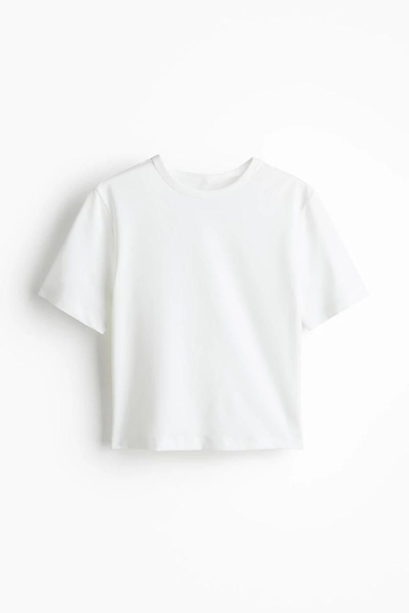 Short, slim-fit sports top in functional fabric made with DryMove™ to wick away moisture from skin and keep you comfortably dry while moving. Round neckline and short sleeves.