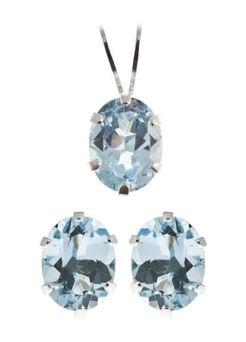 Looking for something that sparkles and shines? This gorgeous and classic earring and pendant set by Jewels 4 Ever will be sure to stand out. This set is set in Sterling Silver and is available in Amethyst, Blue Topaz, Lemon Quartz, Rose Quartz, Smokey Quartz, Green Onyx and Garnet. A great gift or the perfect treat, add a splash of colour to your wardrobe with this beautiful set. Shown here in Blue Topaz.