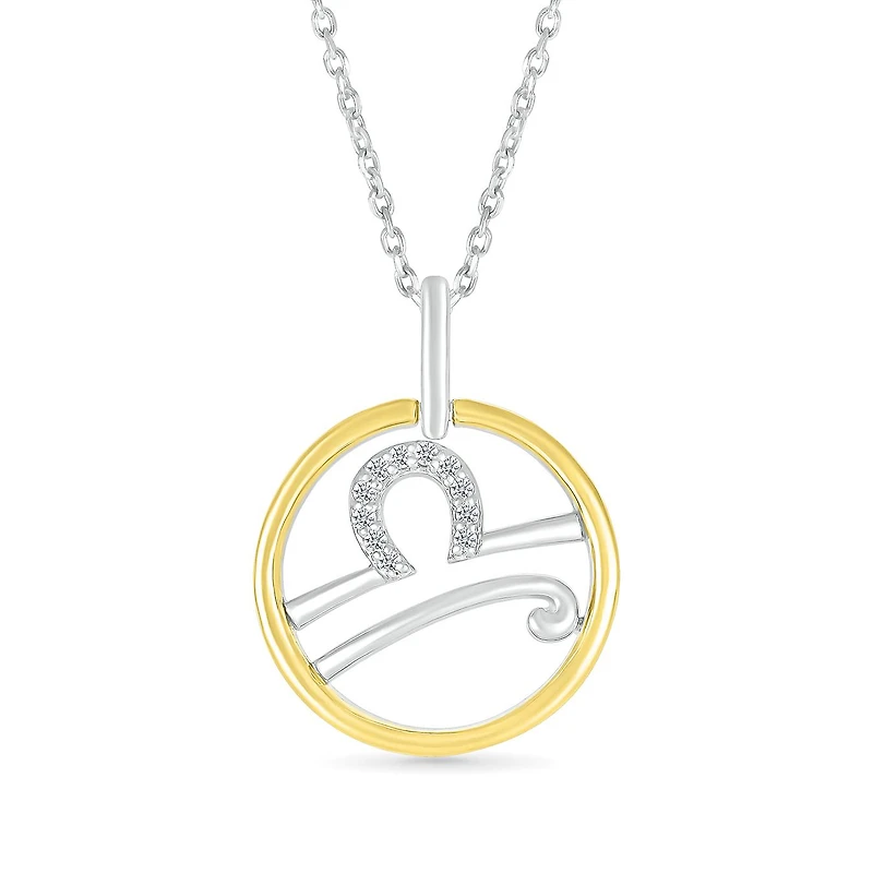 Sterling Silver 10K Yellow Gold Libra Diamond Pendant