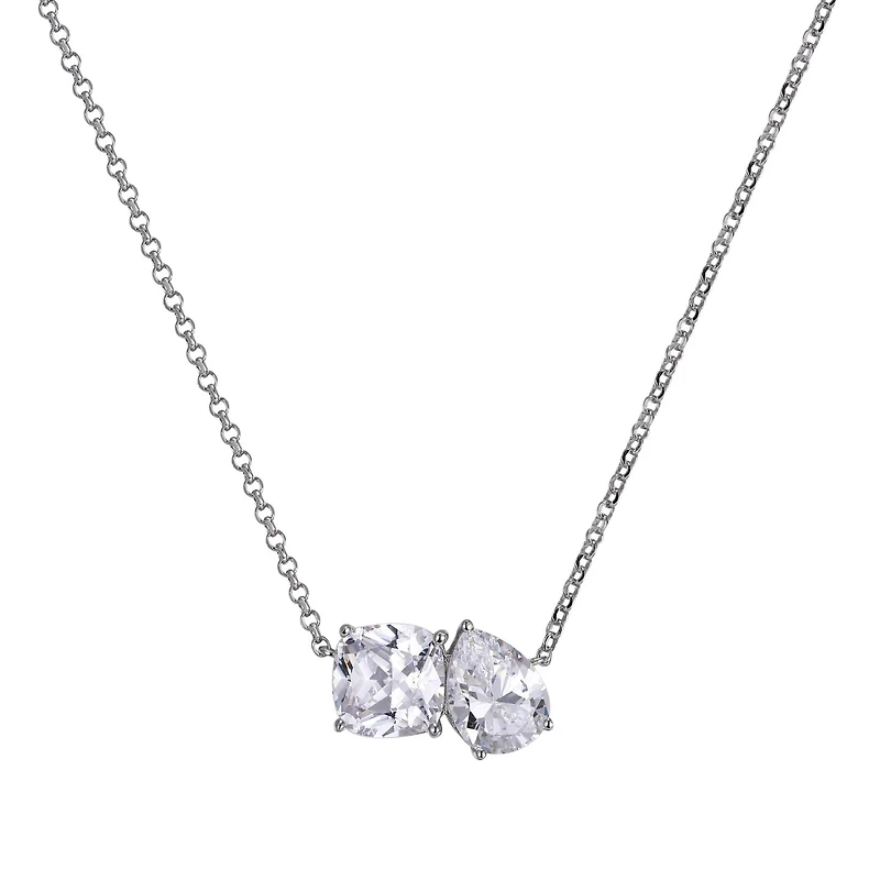 Sterling Silver 18" Pear & Cushion Cut Cubic Zirconia Necklace