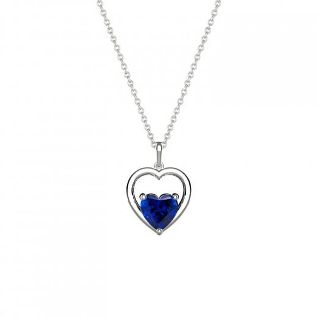 Sterling Silver Created Blue Sapphire Heart Pendant