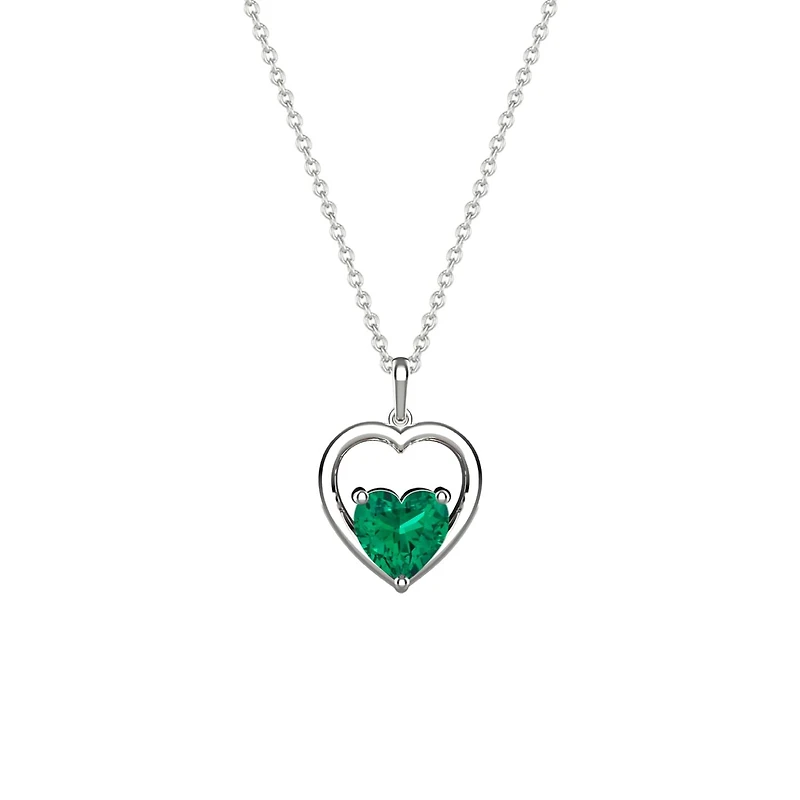 Sterling Silver Created Emerald Heart Pendant