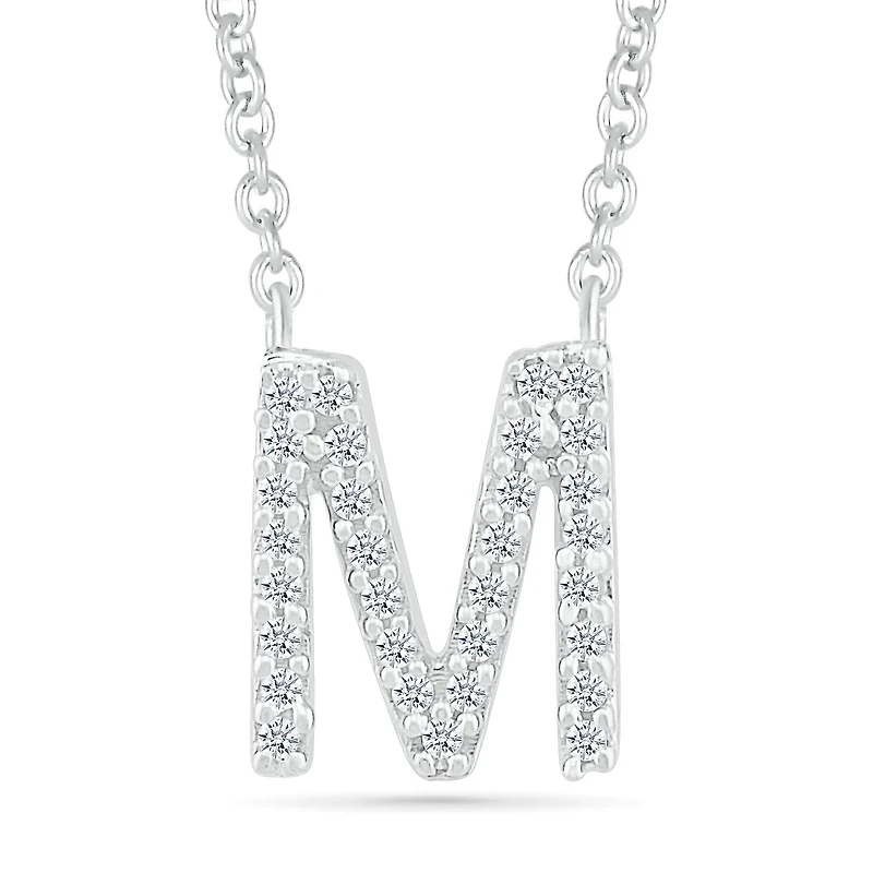 Delicate yet dazzling, this sterling silver and diamond 'M' initial necklace captures the beauty of personal style with a touch of sparkle. Each diamond glistens gracefully, accentuating the elegant initial for a look that’s both timeless and uniquely yours—a perfect blend of sentiment and sophistication.