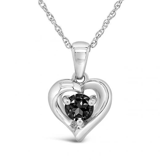 Sterling Silver Amethyst & Created White Sapphire Heart Pendant with Chain