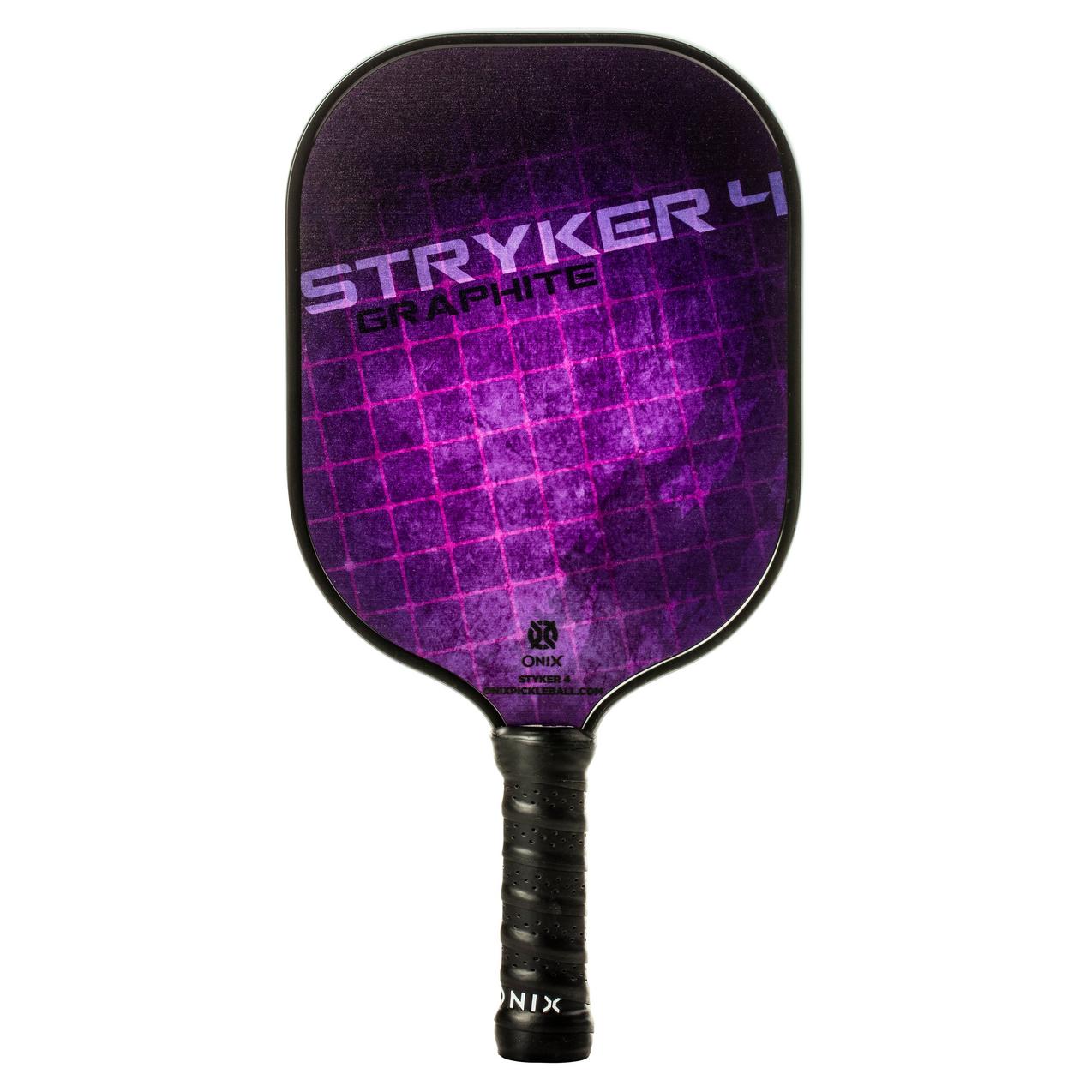 Plan your attack with the ONIX Stryker 4. This graphite pickleball paddle gives its player the advantage by creating the perfect balance of both touch and power. The oversized shape offers a calculated, larger sweet spot that is perfect for beginner to intermediate players. The polypropylene core provides the Stryker's incredible touch at the net, while the paddle's graphite face fuels the power. Weighing 6.9-7.4 ounces, the Graphite Stryker 4 is a light-weight paddle for the player seeking consistent touch, power, and a large sweet spot.