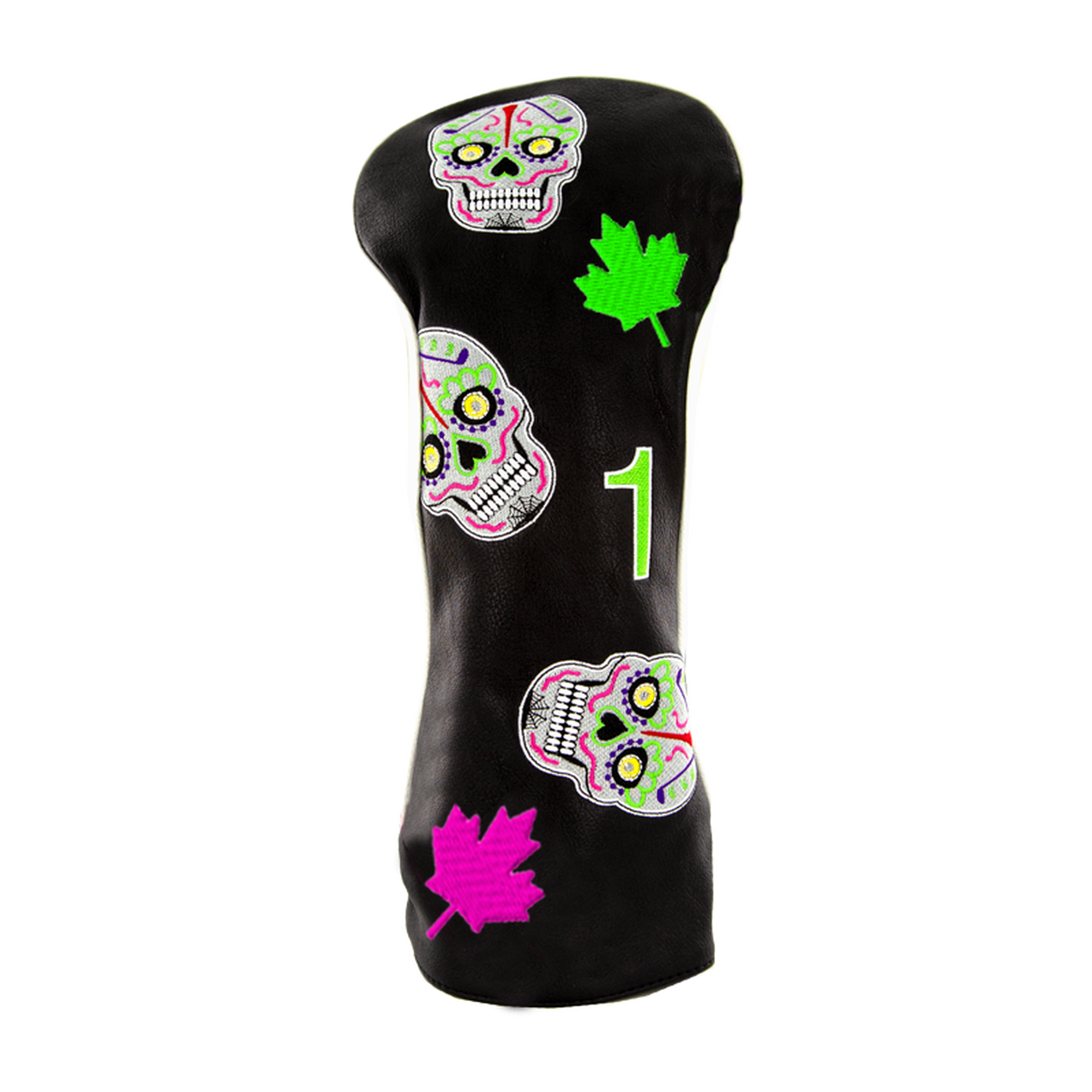 Product Overview: Sugar Skull Maple Leaf Driver Headcover CMC Design Sugar Skull Maple Leaf Driver Cover, Tour Quality, Fully Embroidered/Aplique Driver Cover has great styling, fit and craftsmanship with plush lining and beautiful embroidery. Features: Designed to fit most 460cc drivers Faux leather body construction for enhanced quality and durability Plush lining material protects the driver’s finish from scratches Long neck design protects the driver shaft during storage Exclusive CMC DESIGN custom patterns